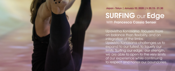 Masterclass with Francesca Cassia Sensei Surfing our Edge Upavistha Konasana focuses more on balance than flexibility, and on integration of the limbs. Upavista Konasana challenges us to expand to our fullest, to liquefy our limits. Surfing our edge, our strength, we are able to open to the very limits of our experience while continuing to [...]